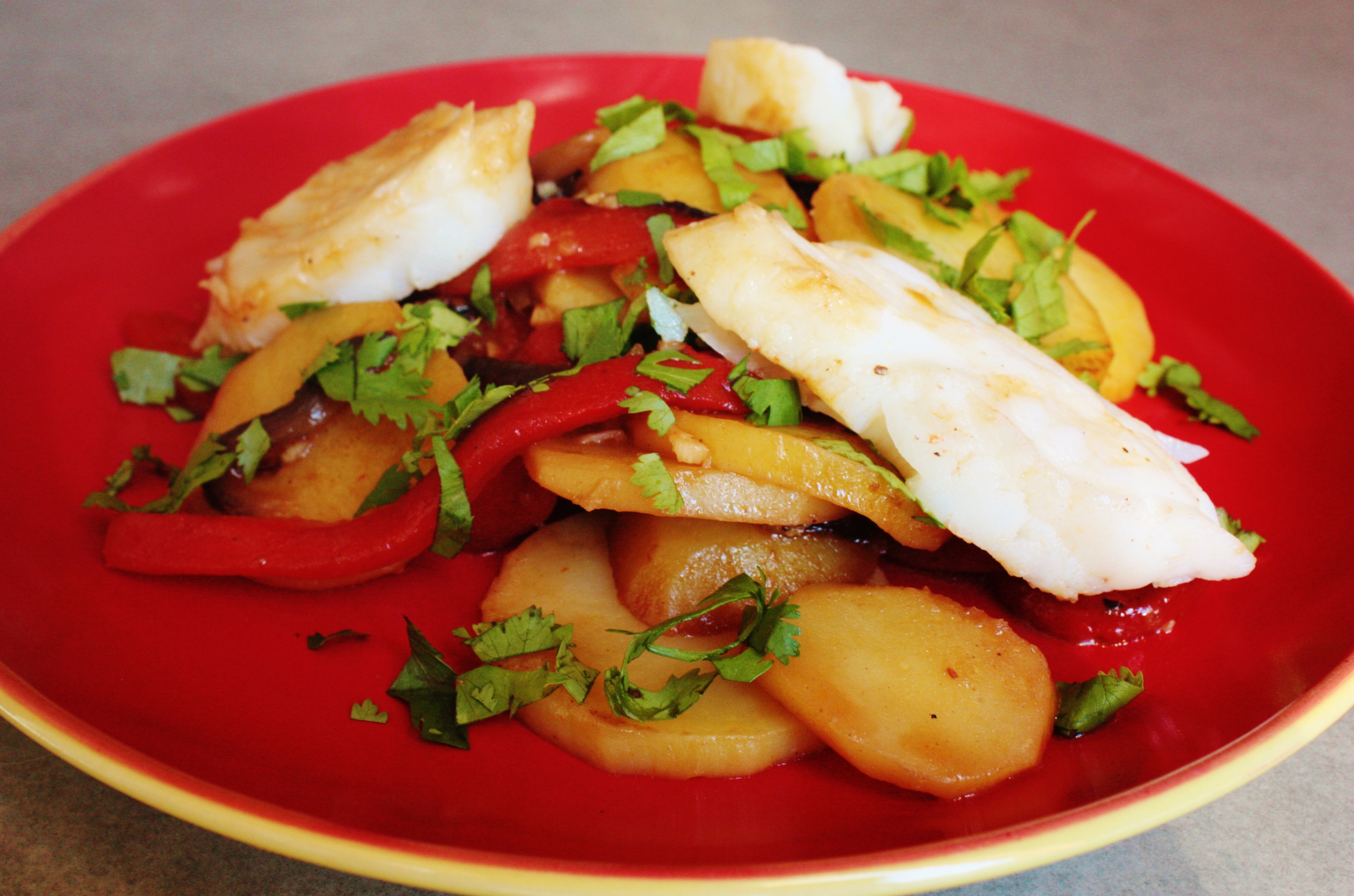 Morue aux poivrons et à la coriandre